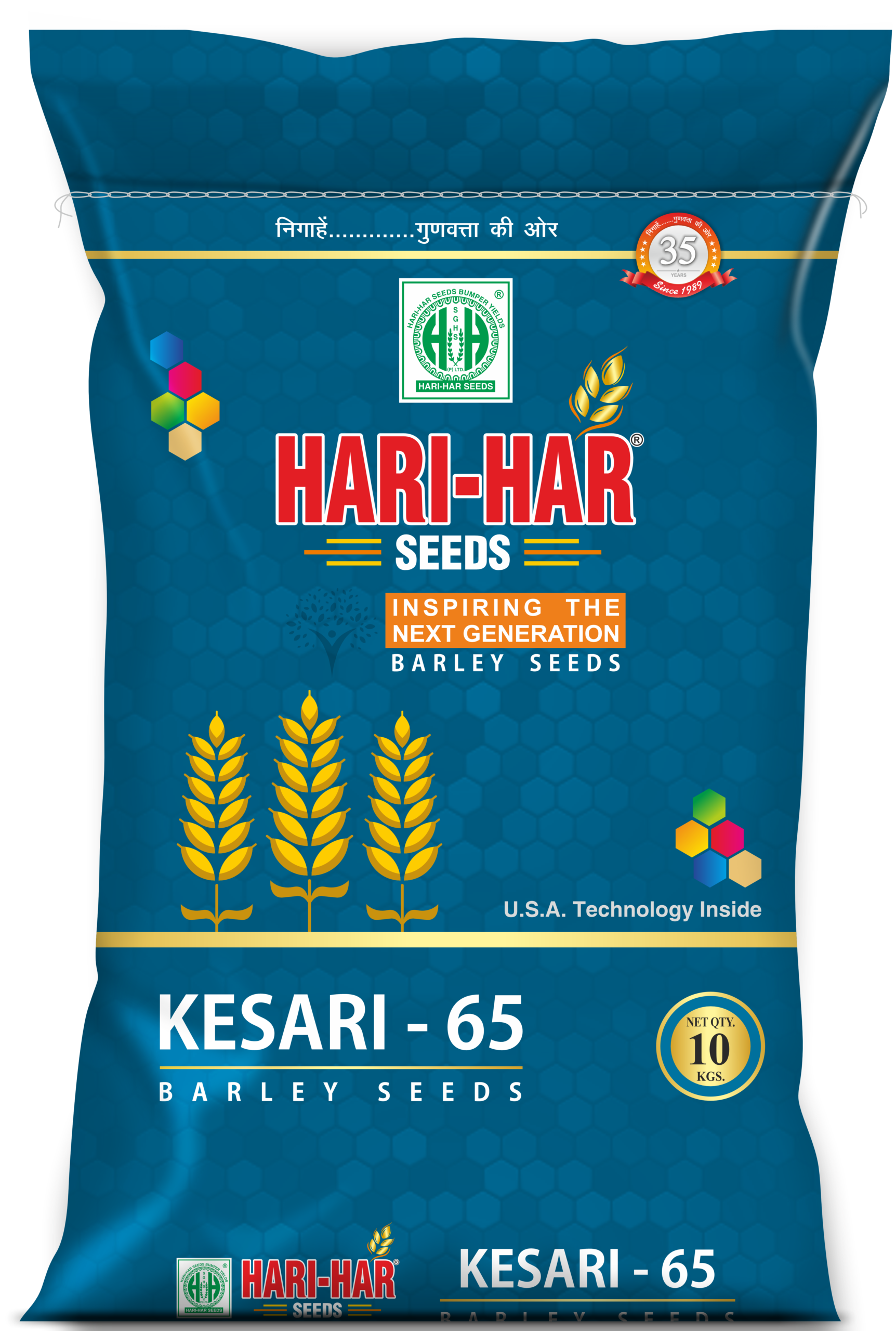 Hari-Har Seeds ka Kesari-65 Barley Seed ek premium quality jau beej hai jo farmers ko better productivity aur strong crop performance provide karta hai. Yeh seeds advanced processing aur USA technology ke saath prepare kiye gaye hain, jo germination aur plant growth ko enhance karta hai.